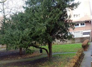 Bij de binnentuin achter de Geerweg, staat een taxusboom/struik. Nu heeft er een mevrouw geklaagd over deze boom, omdat er besjes af vallen. De gemeente heeft hierop gereageerd met een brief aan bewoners. Echter niet iedereen heeft kunnen reageren en in de brief stond ook geen deadline vermeld.